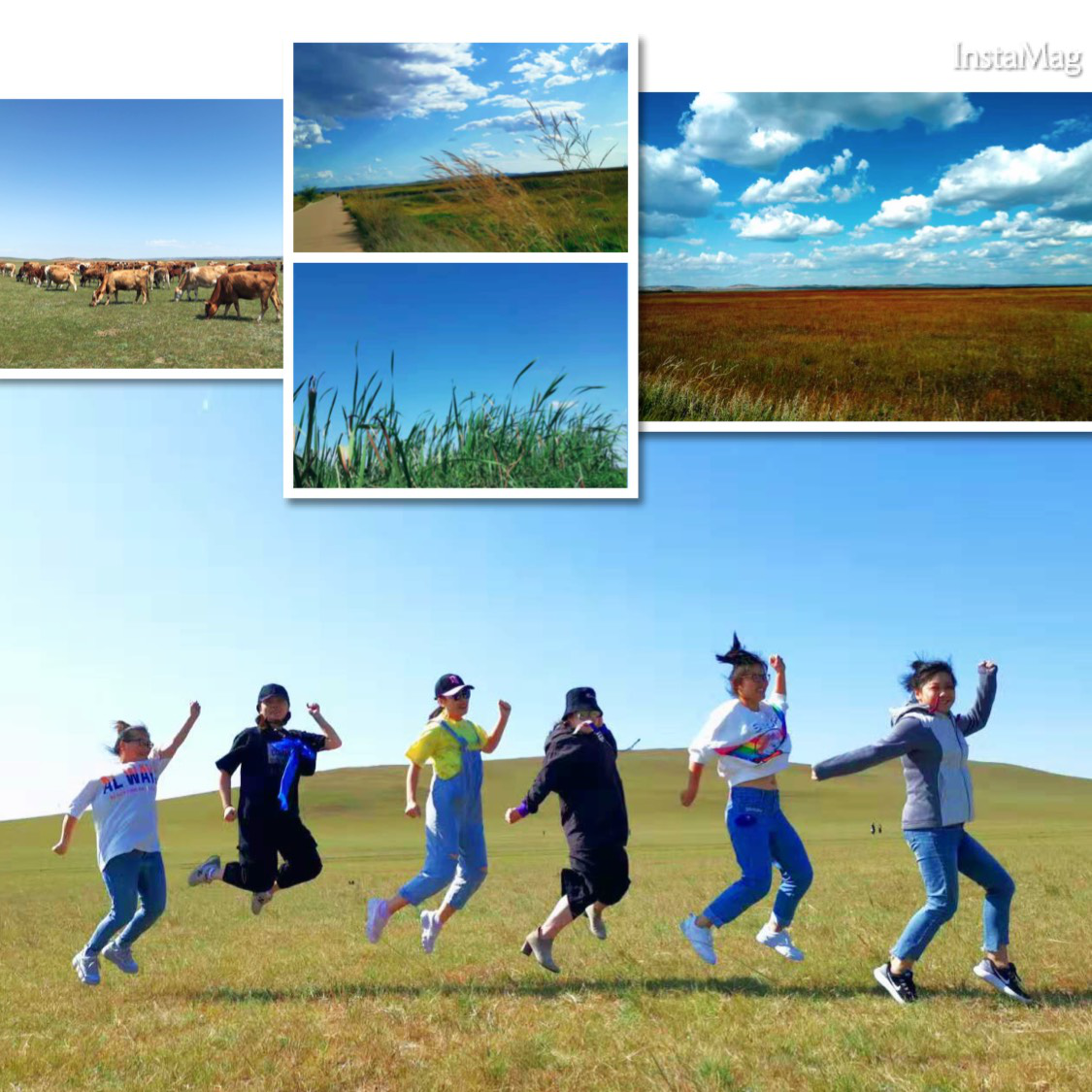 午飯過后,我們便收拾行囊踏上了返程的路。三天的旅程短暫而快樂,我們?nèi)耘f依依不舍。返程大巴在草原上疾駛,朦朧中,仿佛與藍天相伴,隨風而行。車窗外草原飛快地向后方旋轉(zhuǎn),告別我們而去。再見,美麗遼闊的大草原。