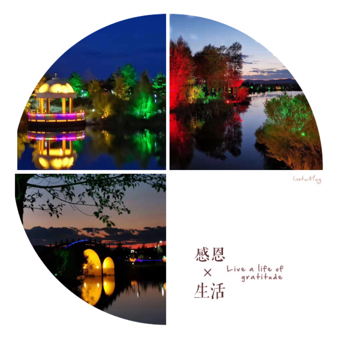 晚上的濕地公園,同白天的大草原是截然不同的風景,夕陽落下,平靜的水面上亮起盞盞彩燈,這是在內(nèi)陸的大都市不曾看過的景色。